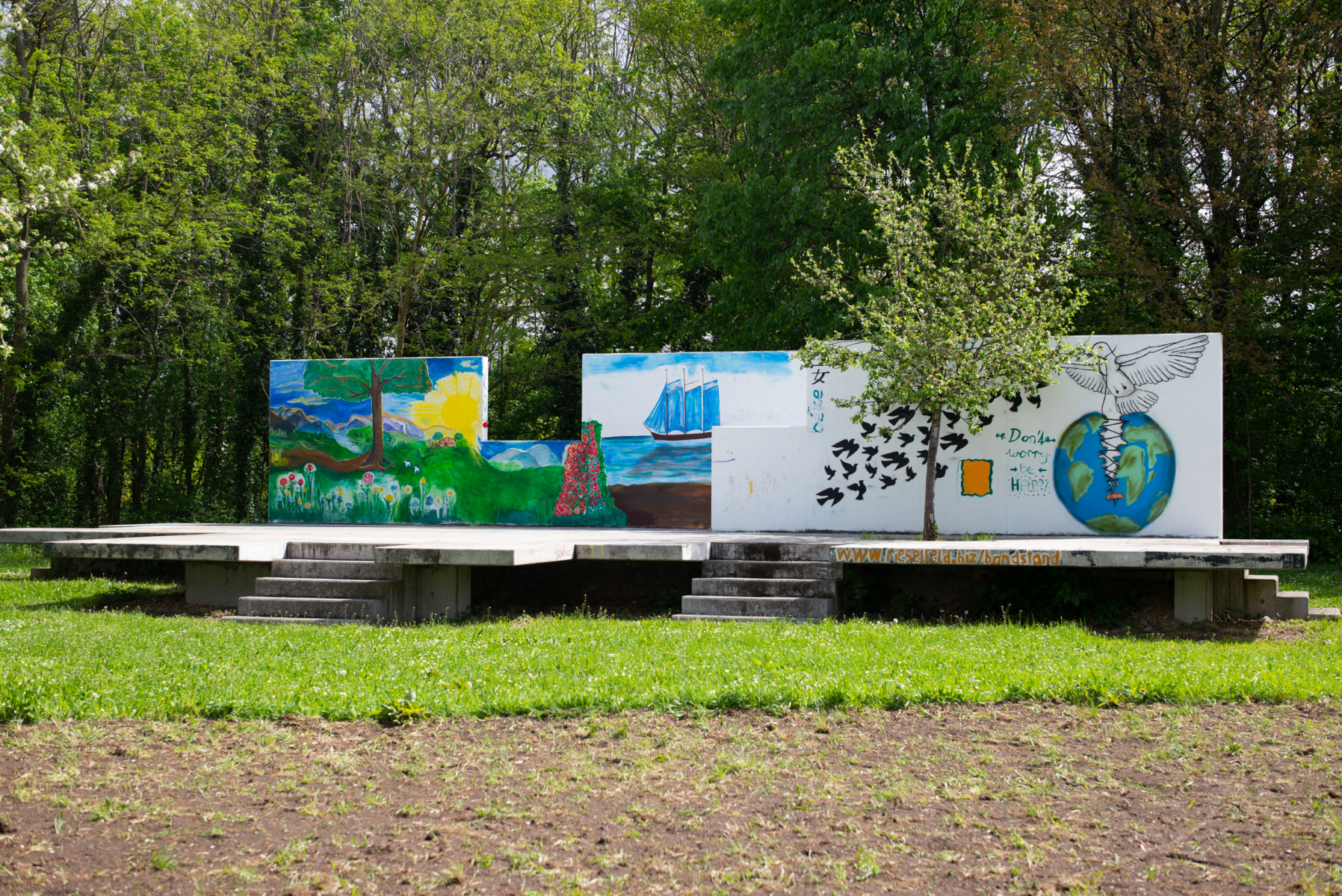 Im Freiburger Stadtteil Rieselfeld entstand 2012 im Rahmen eines Wettbewerbs des Kunstverein Freiburg e.V. „Bandstand“ durch Nathan Coley (1967, Glasgow, GB).