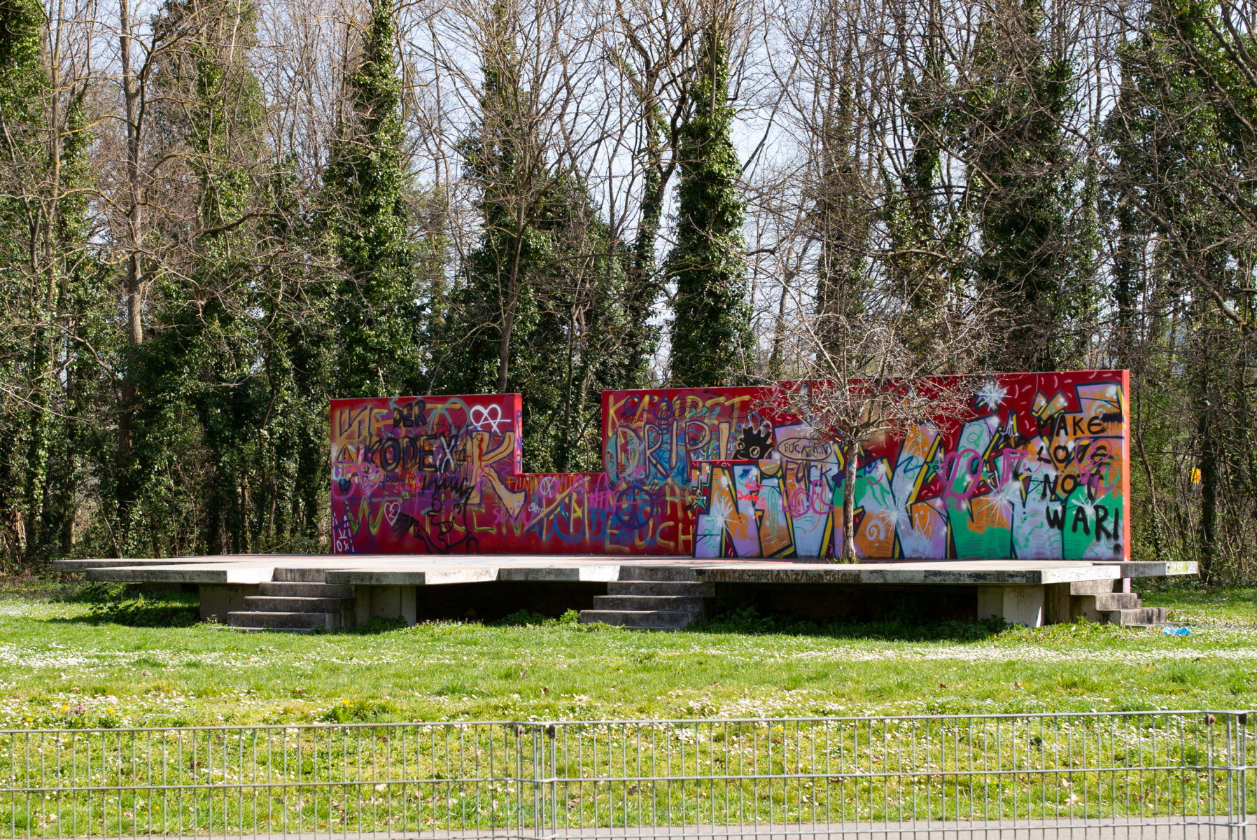 Im Freiburger Stadtteil Rieselfeld entstand 2012 im Rahmen eines Wettbewerbs des Kunstverein Freiburg e.V. „Bandstand“ durch Nathan Coley (1967, Glasgow, GB).