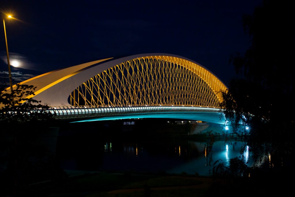 Troja-Brücke – Prag (2019) Die Troja-Brücke in Prag ist eine Auto- und Straßenbahnbrücke über die Moldau. Die Konstruktions-Höhe beträgt 20m bei einer Stützweite 200m und Gesamtlänge von 262m. Es finden 200 Brückenhänger Verwendung. Die Brücke ging aus einem Wettbewerb 2006 hervor. Der Baubeginn war 2010 und im Oktober 2014 fand die Eröffnung statt.